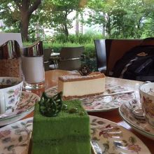 綺麗なケーキがショーケースに並び、土産にはあのG線ワッフルを販売しています。