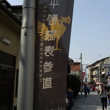 氏橋のたもとから、平等院までつなぐ道です。平等院表参道にはたくさんのお土産屋さんがあり、宇治を代表とするお茶屋さんだけでなく、京都中からお茶屋さんが集まっています。お茶の土産を買うにはここほど最適な場所はありません。ただ営業時間は短く、夕方にはほとんどの店が閉まります。