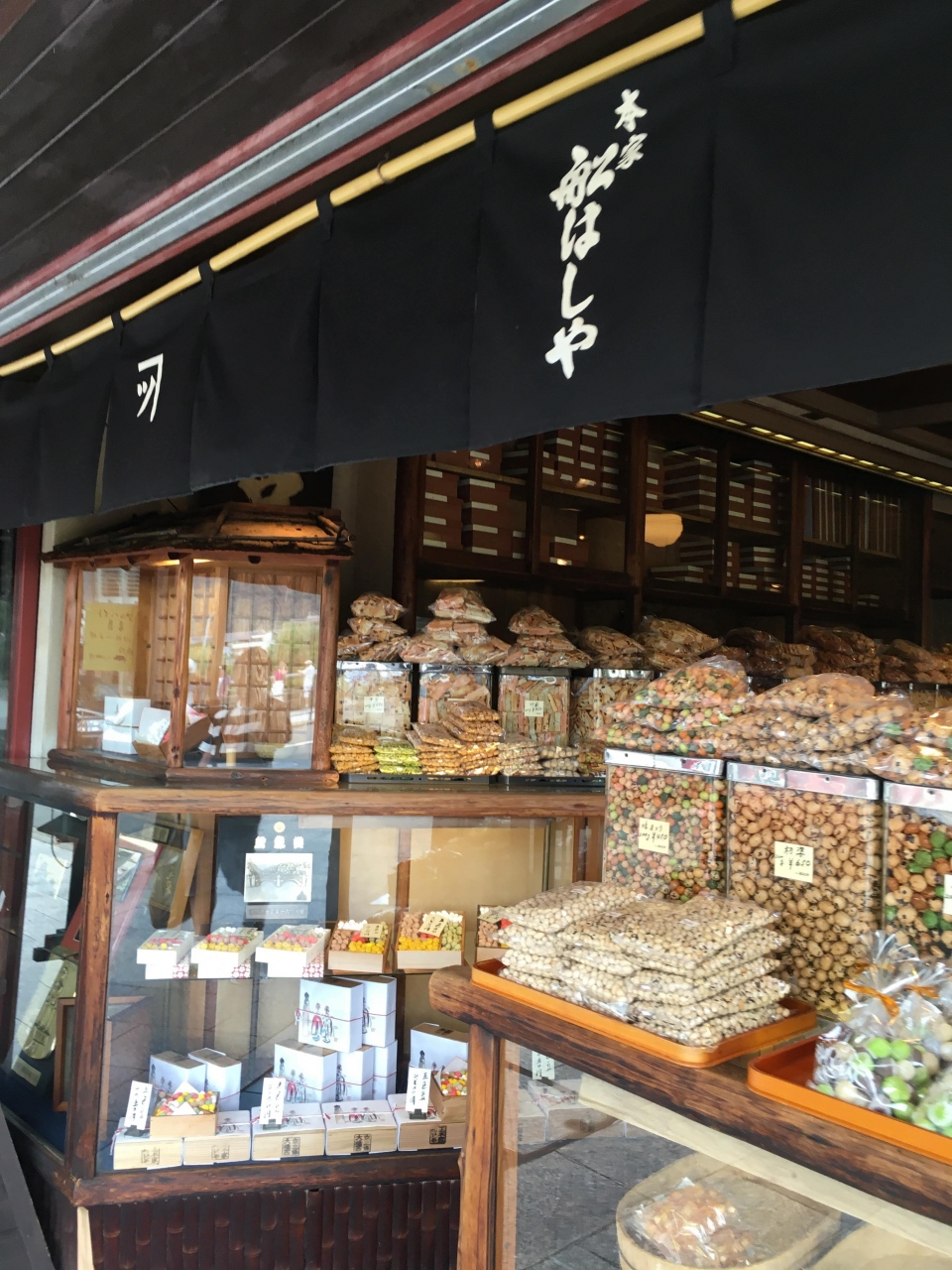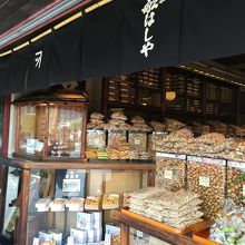 京都のメインストリート三条の三条大橋からすぐにある本家船はしや。京都の普段遣いのお菓子がたくさんうっています。お煎餅などもしょうゆから塩味までなんでもありますし、値段も量り売りでさほど高くありません。気軽なお土産を買うには実にいいお店です。