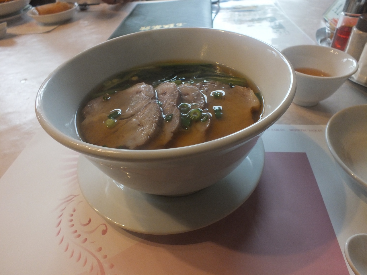 大きな中華料理店です。宴会なども出来る施設もあります。1階は受付と売店、奥には宴会場があります。売店の奥には庭に大きな池が有ります。2階のレストランスペースは仕切りが有りプライベートを保って食事が出来ます。円卓と長卓の両方が有り人数により分けられているようです。階段を上がって右側の窓側の席だと池が見えます。料理の量は多く、チャーハンや単品はみんなでシェアーして食べた方が良いと思います。従業員の対応も良く感じの良い店だと思いました。