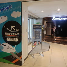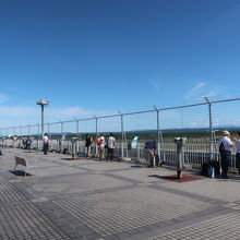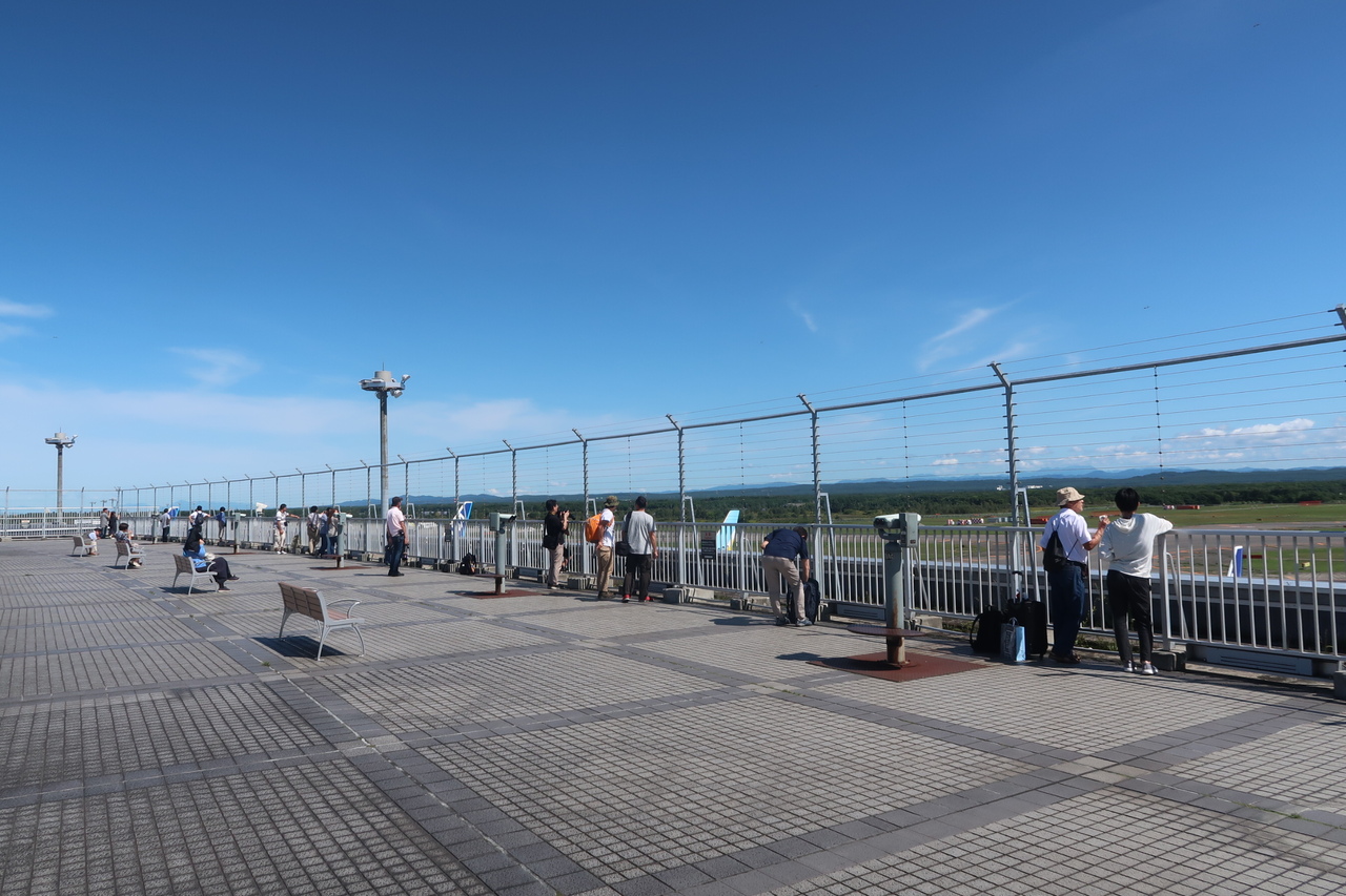 カードラウンジのスーパーラウンジの前から階段を登ります。空港の展望ラウンジは目の前に滑走路が広がり、どこの空港でも開放的な感じがするものですが、ここは滑走路の向こうには緑の森がつづき、建物もほとんどみあたらないため、開放感は別格です。夏場でも涼しい風が吹き、居るだけで心地よい場所でした。