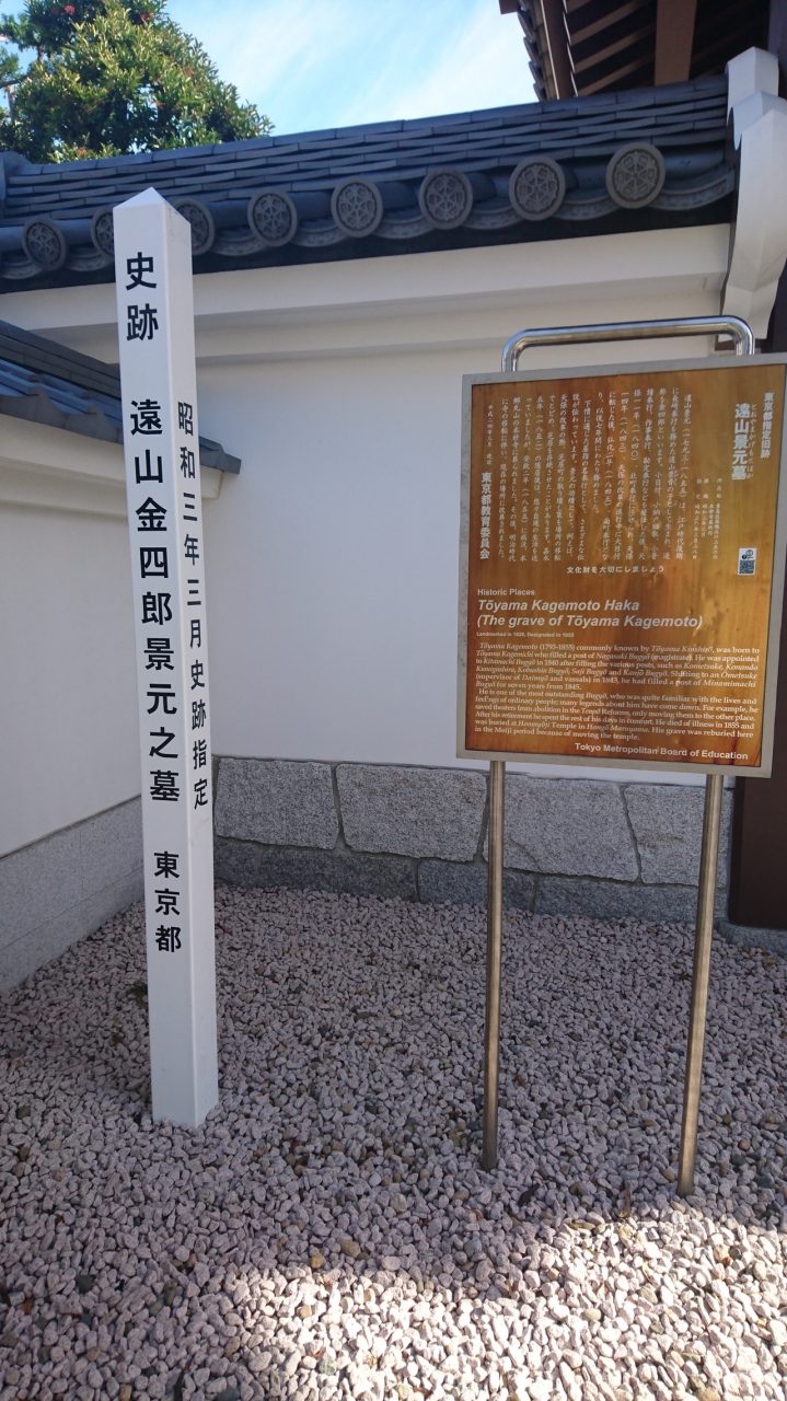 巣鴨にある本妙寺に行くと山門の前に遠山の金さんでおなじみの遠山景元のお墓がある旨の石標が建てられていました。墓所に行くと、お墓の脇には石碑が建てられており、威風堂々とした雰囲気がありました。有名人のお墓があるのも江戸の中心ならではと感じました。