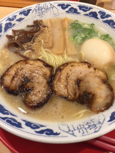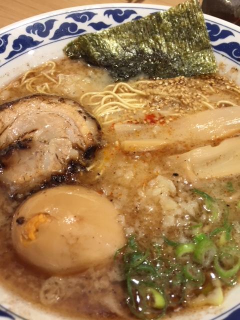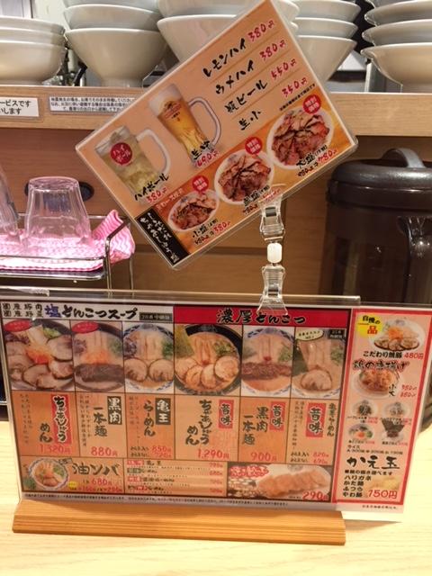 今回は塩とんこつベースの亀王ラーメン、濃厚とんこつベースの昔味を注文しました。