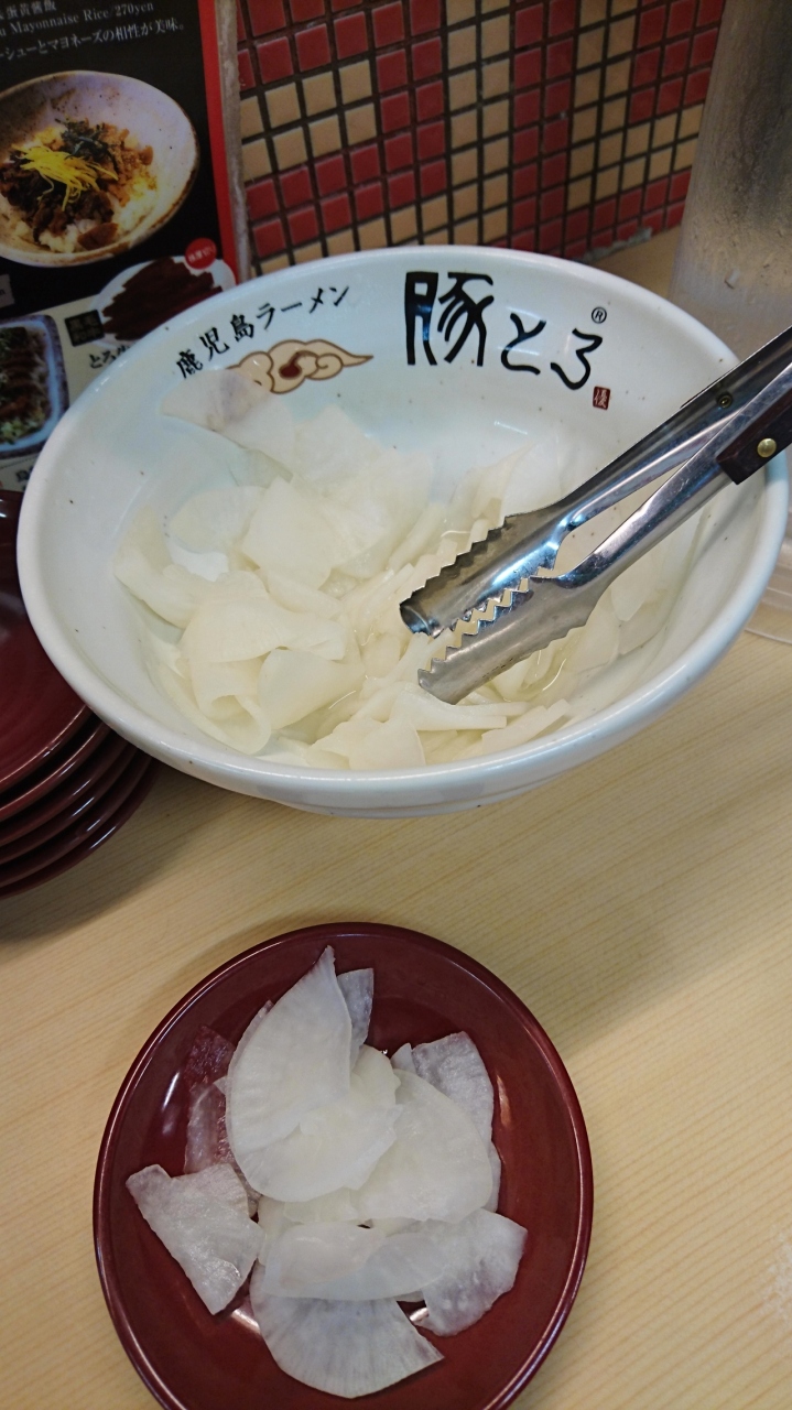 テーブルには、東京では見ない大根がおいてありました。サッパリしていておいしかったです。