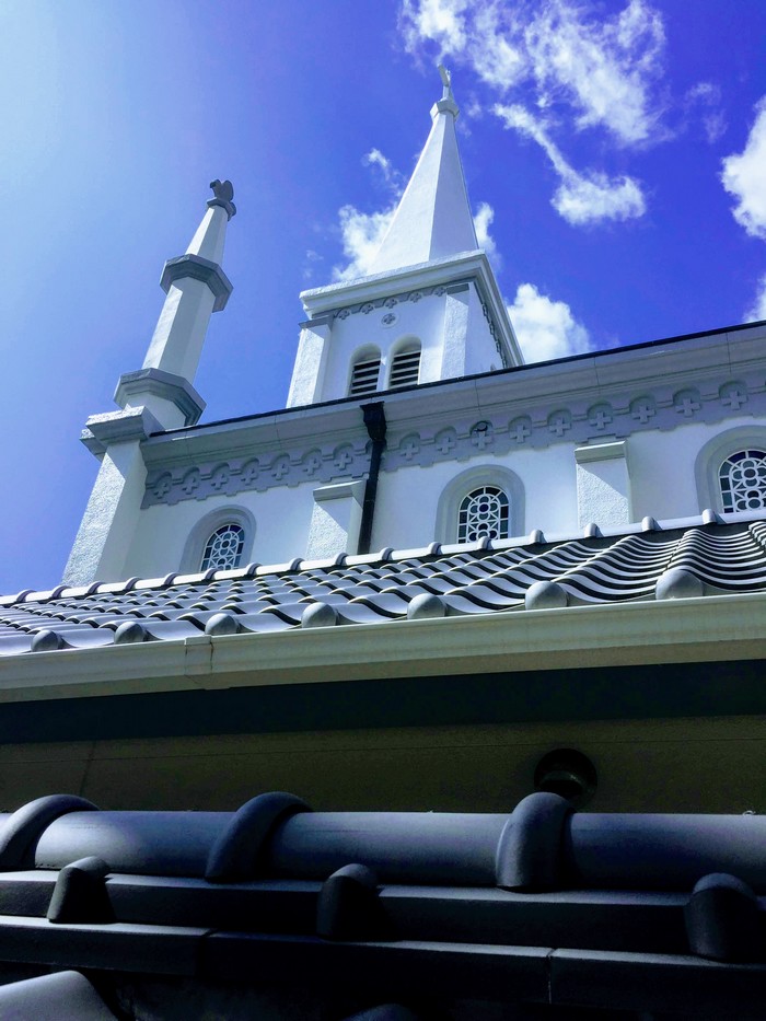 遠くから観ると洋式の教会ですが近くに行くと分かるように日本瓦が使われていて長崎らしい和と洋の融合が見事です!