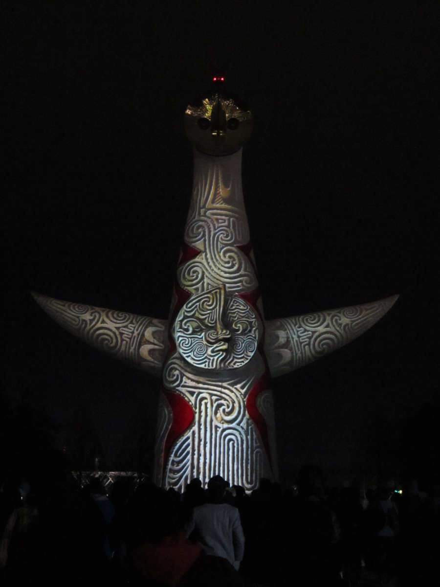 大阪のシンボルとも言える太陽の塔。近年は3Dプロジェクションマッピングも行われ、訪問時はそのイベントを目当てに訪問しました。城が印象的な太陽の塔に、普段は見られないような柄が映し出され、音楽の効果とともに非常に印象的でした。頻繁に繰り返して上演されているので、押し合いなどもなくゆっくり見ることが出来ました。