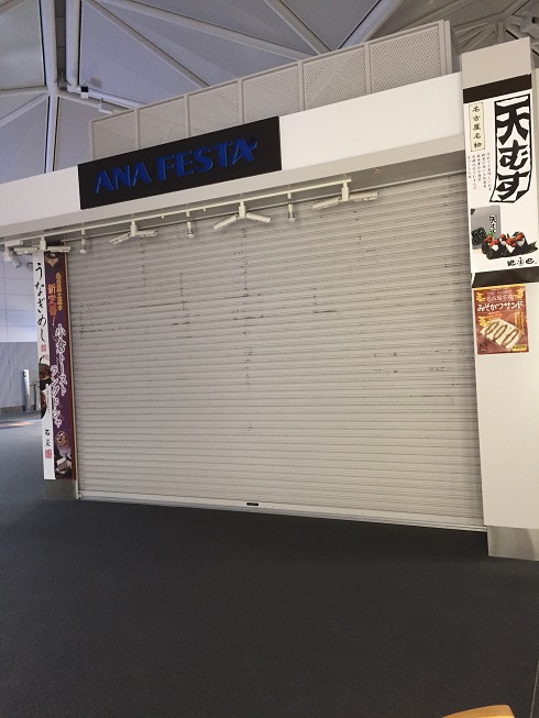 国内線制限エリア内にあるANAフェスタ。夜遅いとやっていません。フライト少し遅れたので遅くに行ったのですが、閉まっていました。お土産を買い忘れたら最後に買うチャンスはここです。