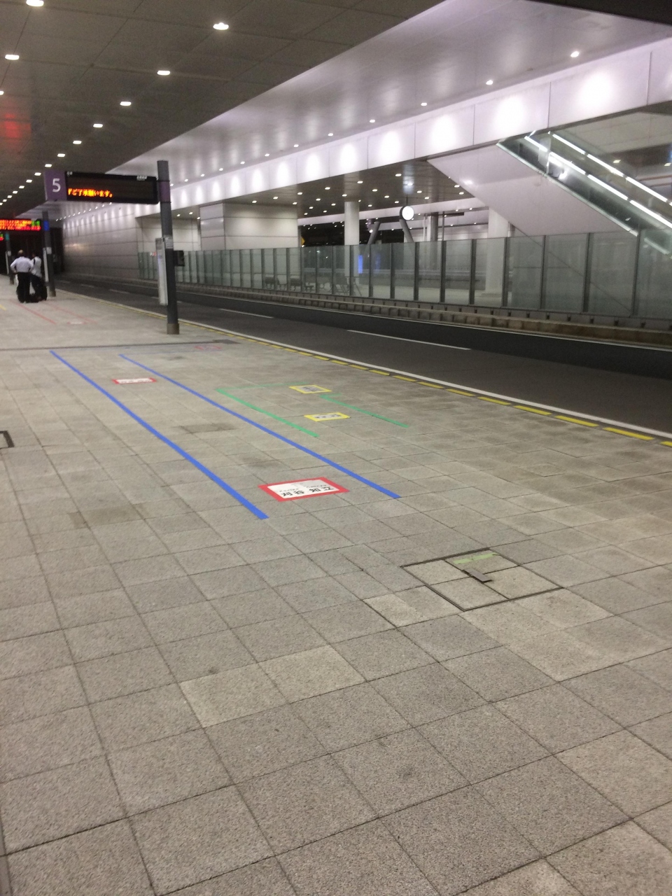 到着エリアを出て総合案内所を正面に見て右側にあるファミリーマートの横の階段を降りると乗り場あり、行先別に番号があるので分かりやすかったです。エレベーターもあるので荷物が多くても平気です。