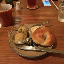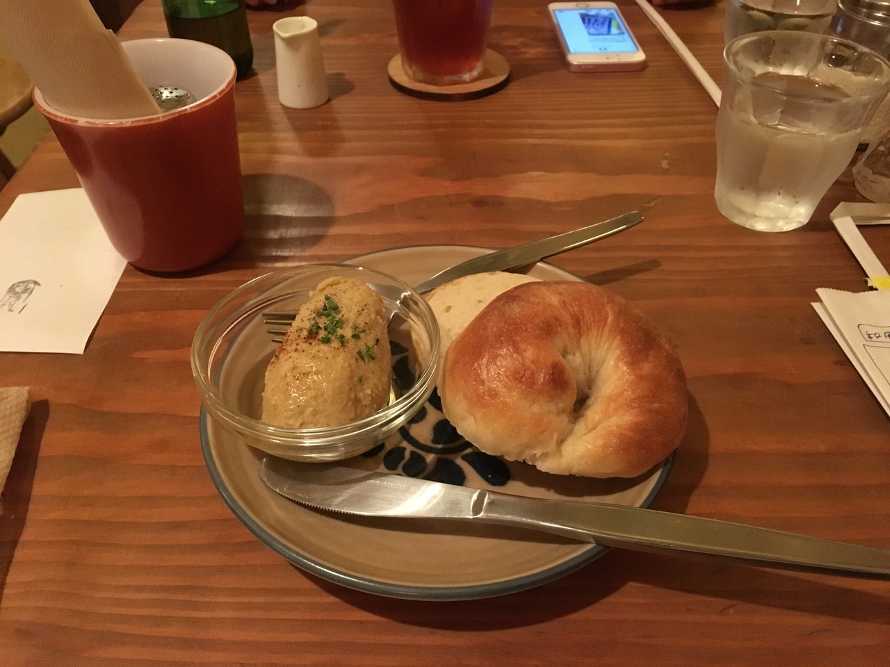 小腹がすいていたので、ひよこ豆のペーストとベーグルサンドにしました。