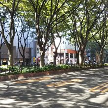 片側3車線の大きな通り。上下線の中央部にはモニュメントが展示されており、ちょっとした散策もできそうです。官庁街も近く都会の真ん中ですが、この通りはとても緑豊かで、散策するだけでも気持ちよい通りでした。カフェなどもあるため、食事や休憩もできそうでした。