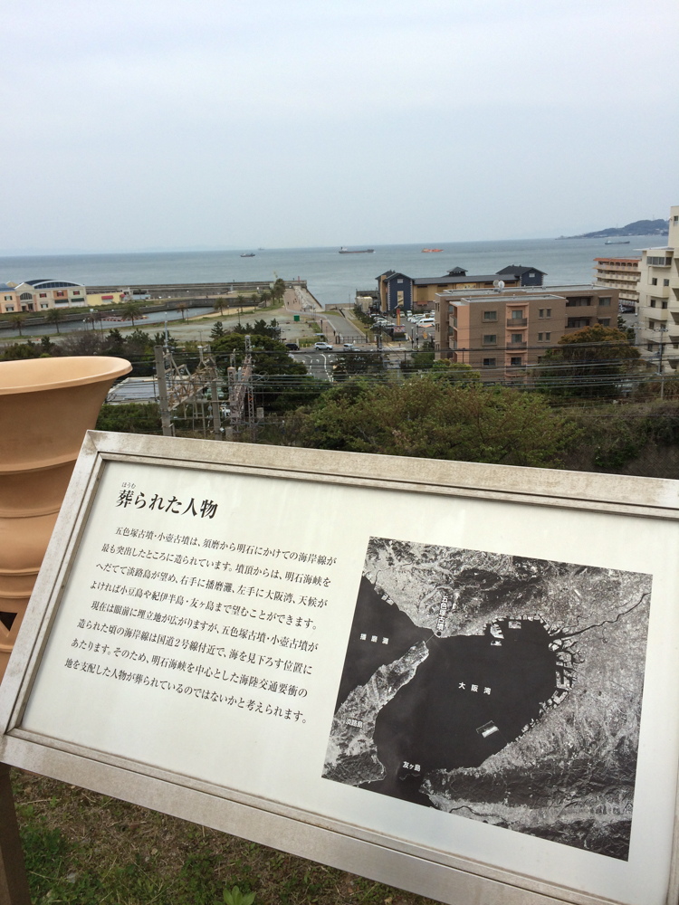 海から少しある高台にある五色塚古墳。ここから見る景色が本当に絶景。淡路島や明石海峡大橋、それに瀬戸内海が本当に美しいです。ここが入場無料なのは本当にすばらしいです。惜しむらくは交通の便。垂水のアウトレットからも見える距離にあるのですが、垂水のアウトレットから歩いていくとかなり距離があります。