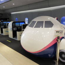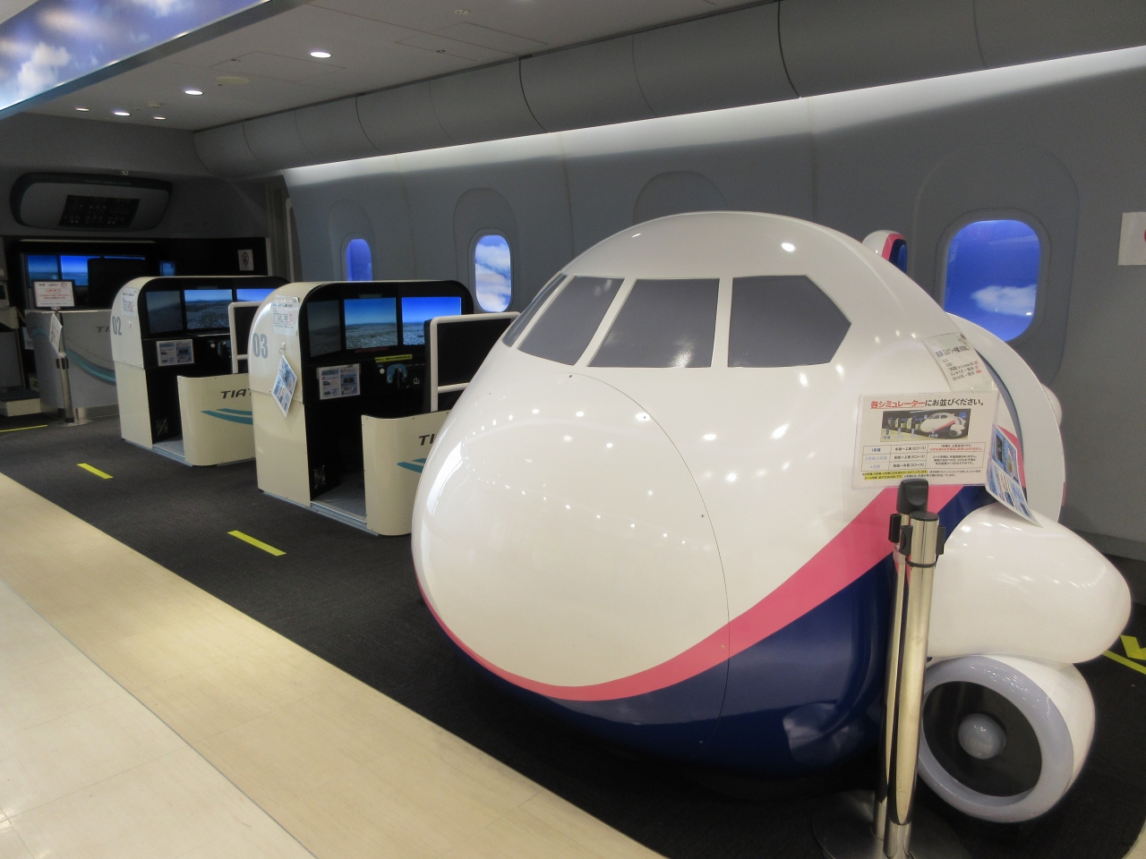 羽田空港国際線旅客ターミナル5階のはねだ日本橋からショップへ行く通路です。羽田空港国際線を利用している各航空会社のミニチュア飛行機が展示されている長いケースが通路に沿ってあります。パイロットになったつもりになれるシユミレーターが4台あるゲームコーナーがあり面白いです。訪れた時は遊ぶ人はいませんでした。羽田空港見学に来る人用のゲームかもしれません。離日する外国人は遊ぶ時間やゆとりはないかもしれないと思いました。