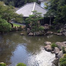 本堂への階段の横なので上り下りしながら見えますがこのように上から見渡せる庭園は結構レアだと思いますので景色を楽しんで下さい。