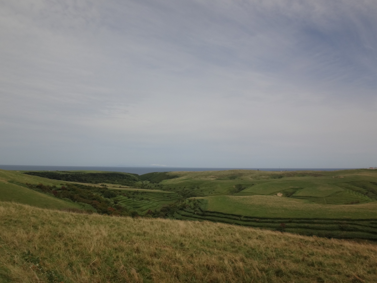 牧草地帯に牛が放され、丘陵地には風力発電機が何基も並び素晴らしいです。