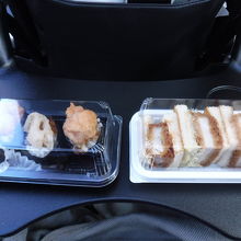 ヨネスケの天むすとヨシカミのカツサンドのセットという空弁です。