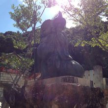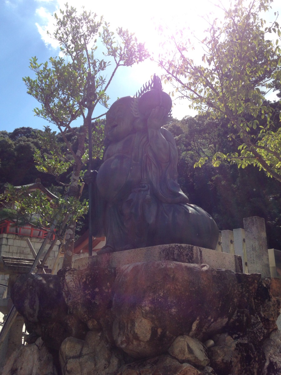 ここでは布袋尊をお祀りしていて拝殿に至る階段の両側にも布袋尊の像があります。