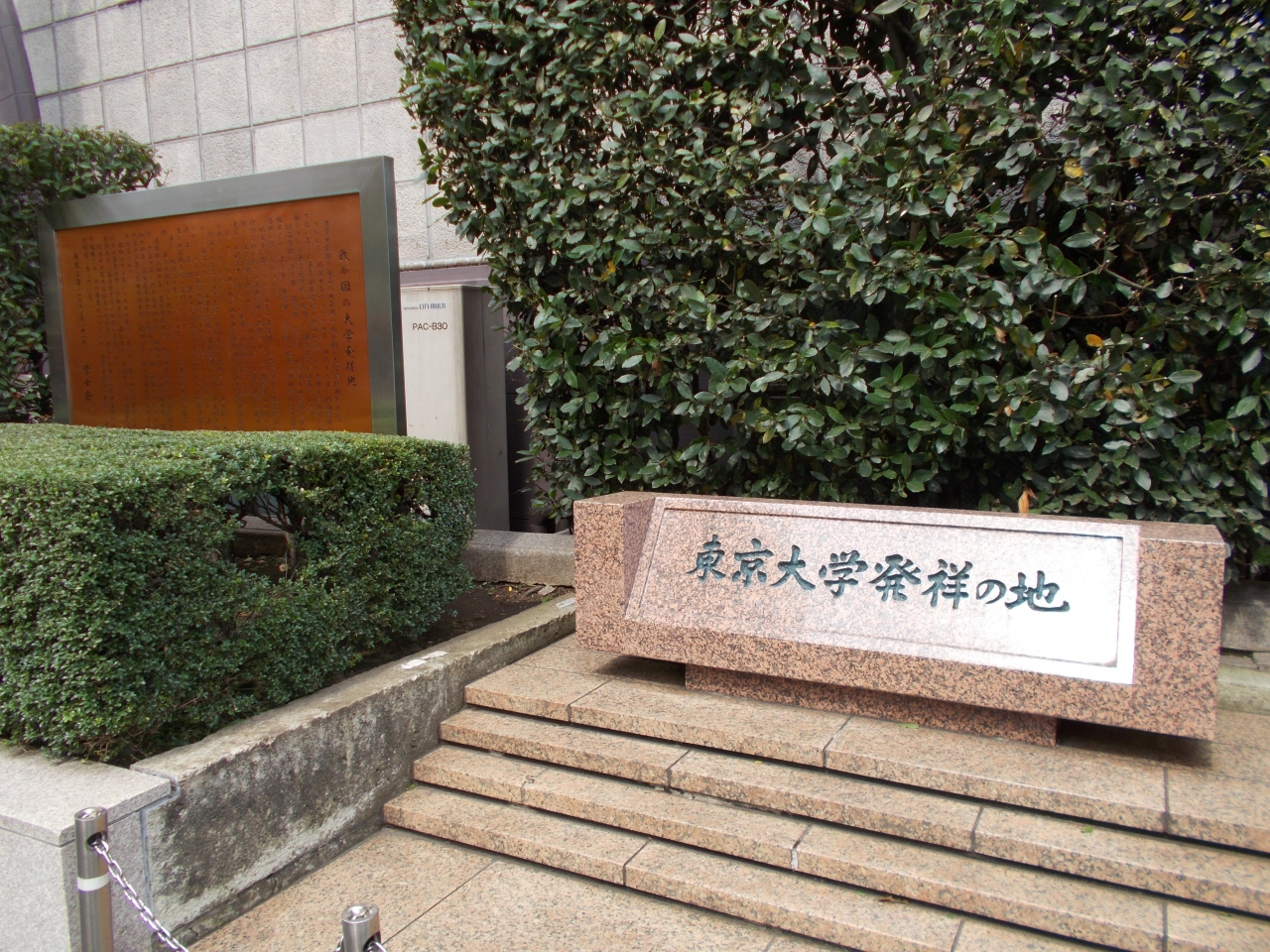 この我が国の大学発祥地(東京大学発祥の地) は現在は学士会館になっています。その一角に碑があります。この地は護持院が原という場所で明治初めには東京大学の前身やいくつかの大学の前身が作られています。その学生たちのために神田の本屋も集まったのです。