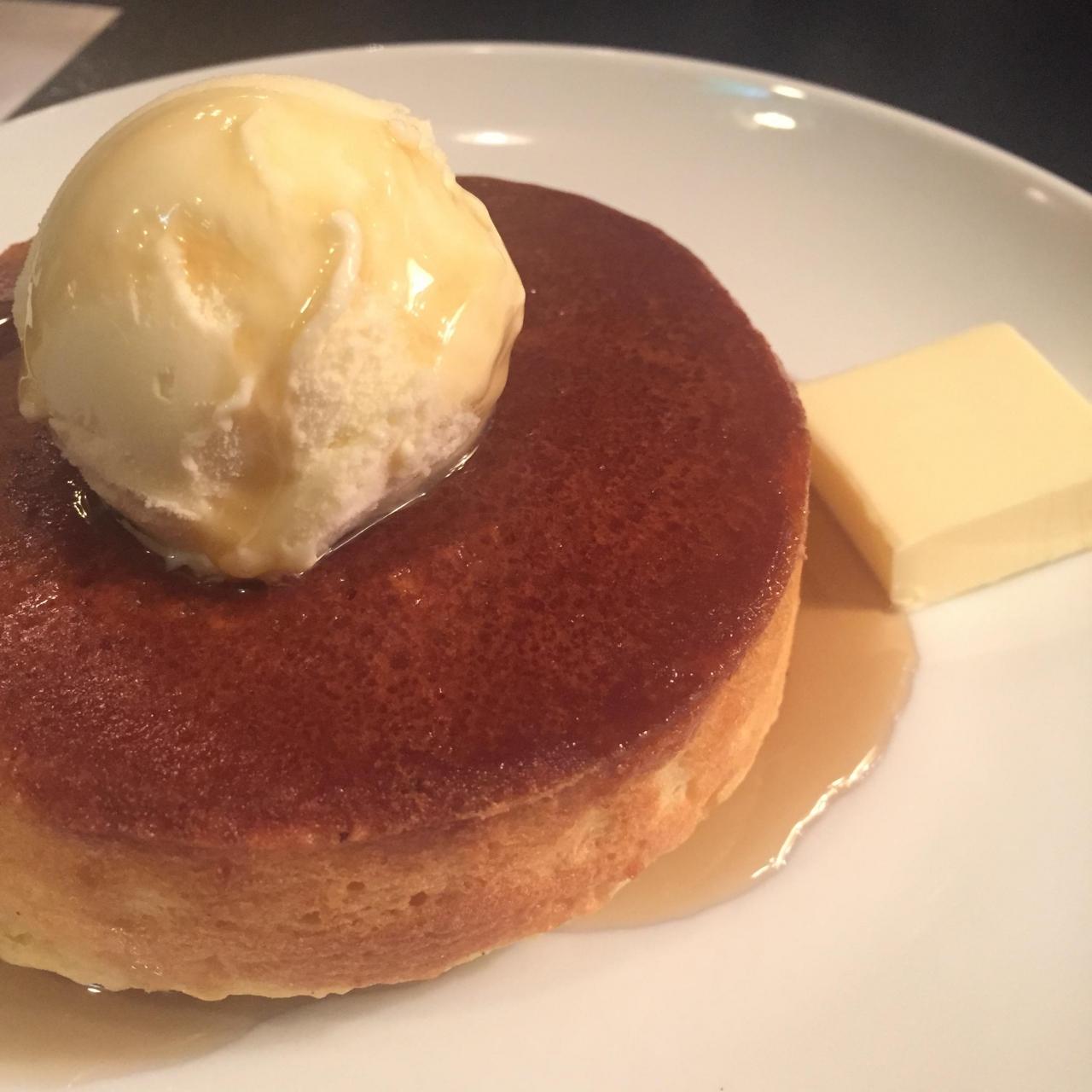 最近流行っているようなふわとろ系ではなく、分厚くて固めの硬派なパンケーキです。