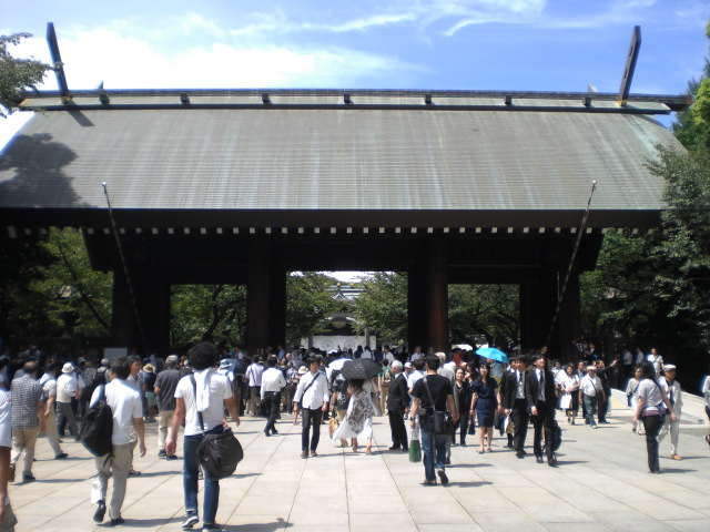 8月15日に、靖国神社に参拝し、神門に拝礼しました。