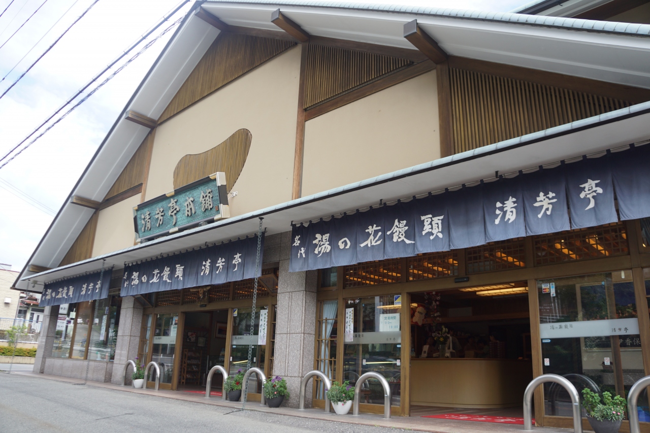 清芳亭は、もうすぐ石段街という伊香保温泉の入口。大きな構えの店舗です。伊香保には湯の花饅頭という名物があって、たぶん、10軒くらいはこれを取り扱っているお店があって、ここもその一つ。
