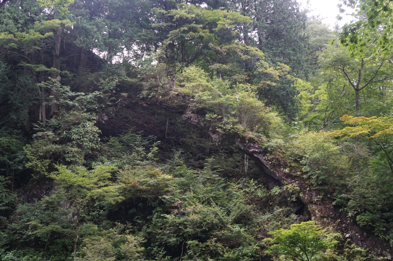 榛名神社の随神門を過ぎてすぐ。鞍掛岩は、右手の川向こうに見えるはずなのですが。。なんかよく分からない。で、近くでカメラを構えている人に尋ねるとあれですよと指差されて、それを見ると。。本当にか細い岩の橋が架かっていてそれが鞍掛岩。力強い姿を想像していましたが、風景に消え入りそうな景観。ちょっとギャップがあるかもしれません。