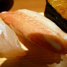 この日食べた寿握り(¥2,376-)は、中トロに寒ブリ、真鯛昆布〆に本ずわい蟹など盛りだくさんで、ネタも大きくコスパ最高のお寿司です。