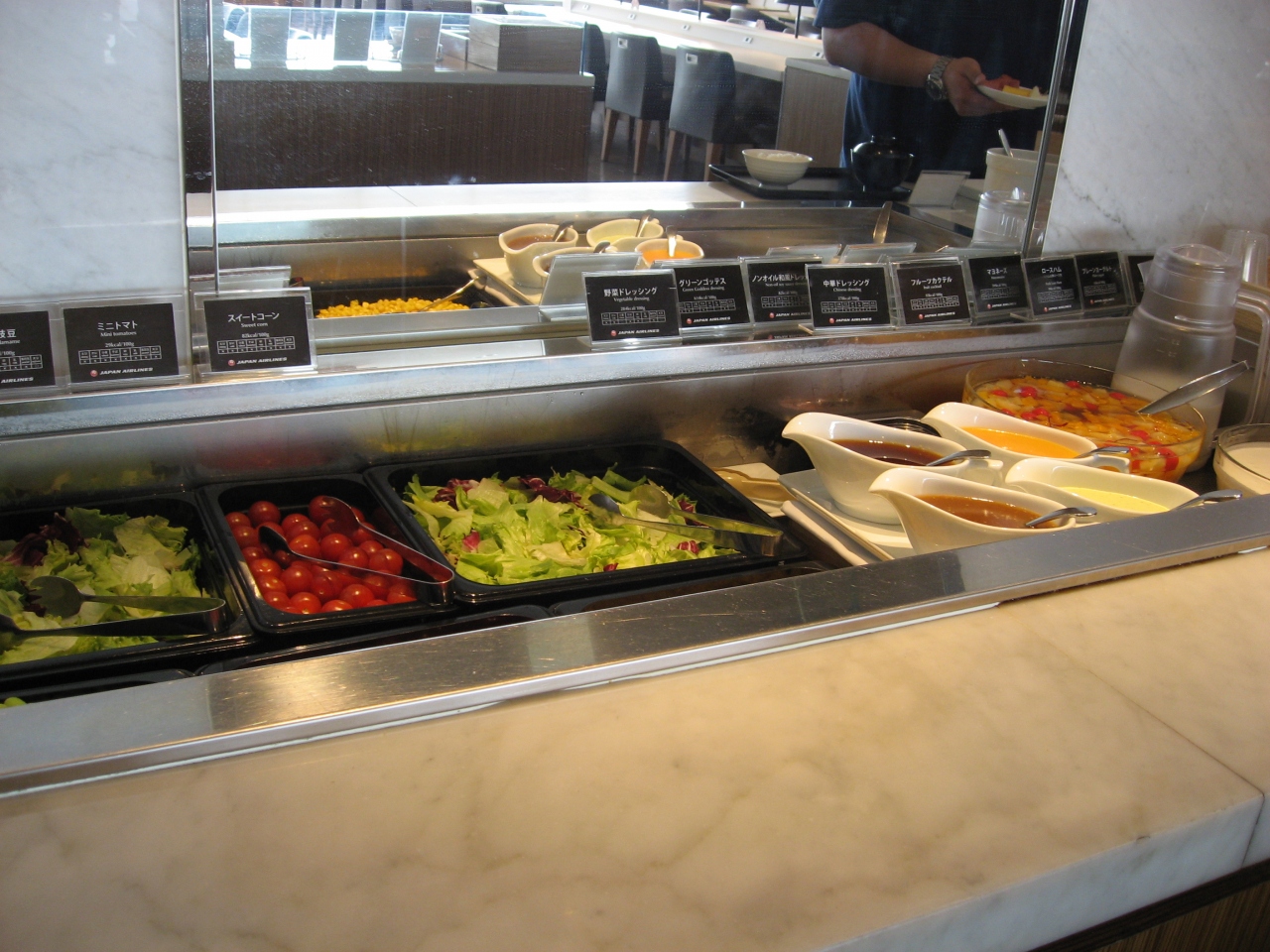特に朝は、出国してまずラウンジに行って食事を済ませる方が良いです、ダイニング以外の(下のスペース)は広く座る場所は沢山あります。