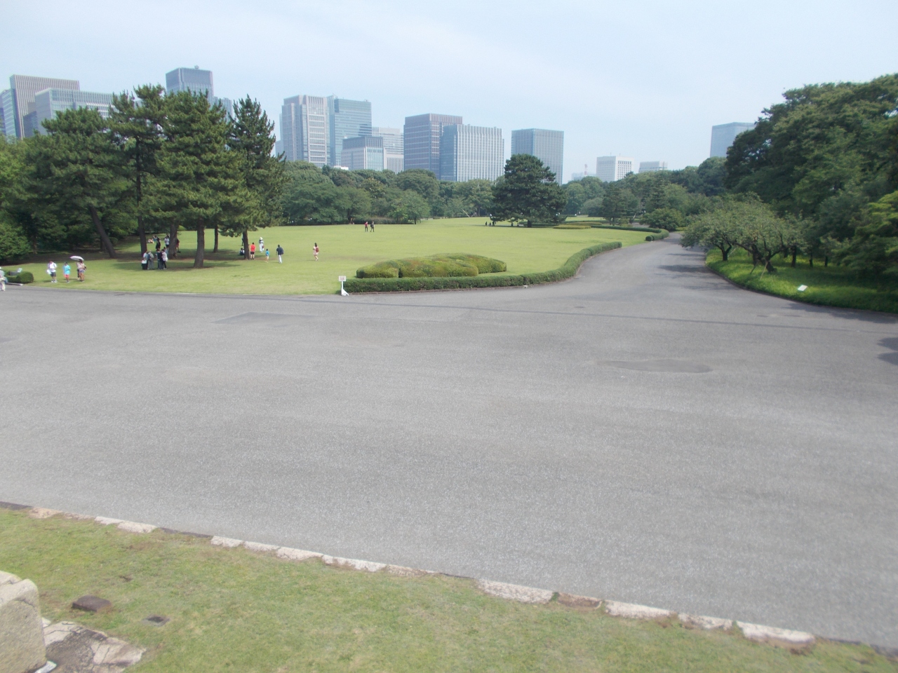この江戸城本丸跡は現在は芝生や木々が植えられています。当時は御殿として多くの建物がたてられていたのです。当時の様子を残しているのは南の冨士見櫓と西の土塁の上にある冨士見多聞と同じく西の土塁の中にある石室です。新たな桃華楽堂がたてられています。本丸跡は天守閣跡から一望できます。