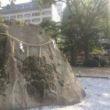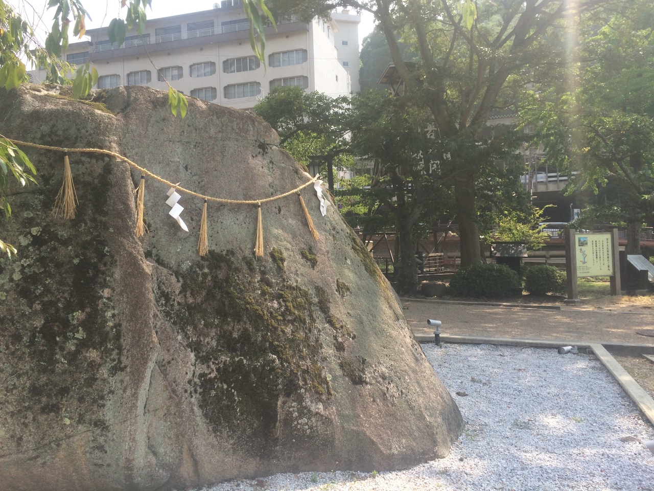 太閤橋の隣にある大きな石で、高さ5mもあり周囲も19m、重さは検討つきませんでしたが、130トンもあるとのことです。石の上部には縄がかけられたような、くくったような感じで、石を祀ってありました。大きな石ですが皆、通り過ぎ立ち寄る人も少なかったです。