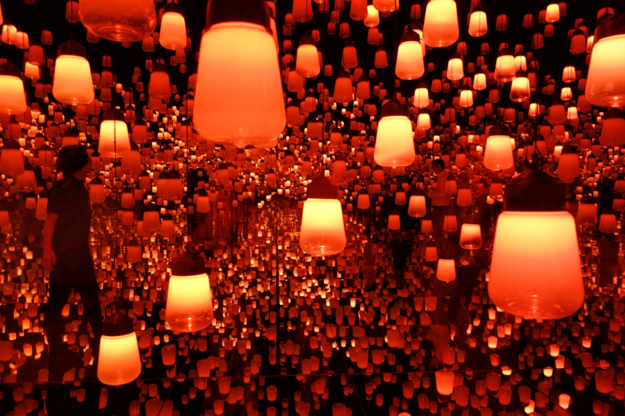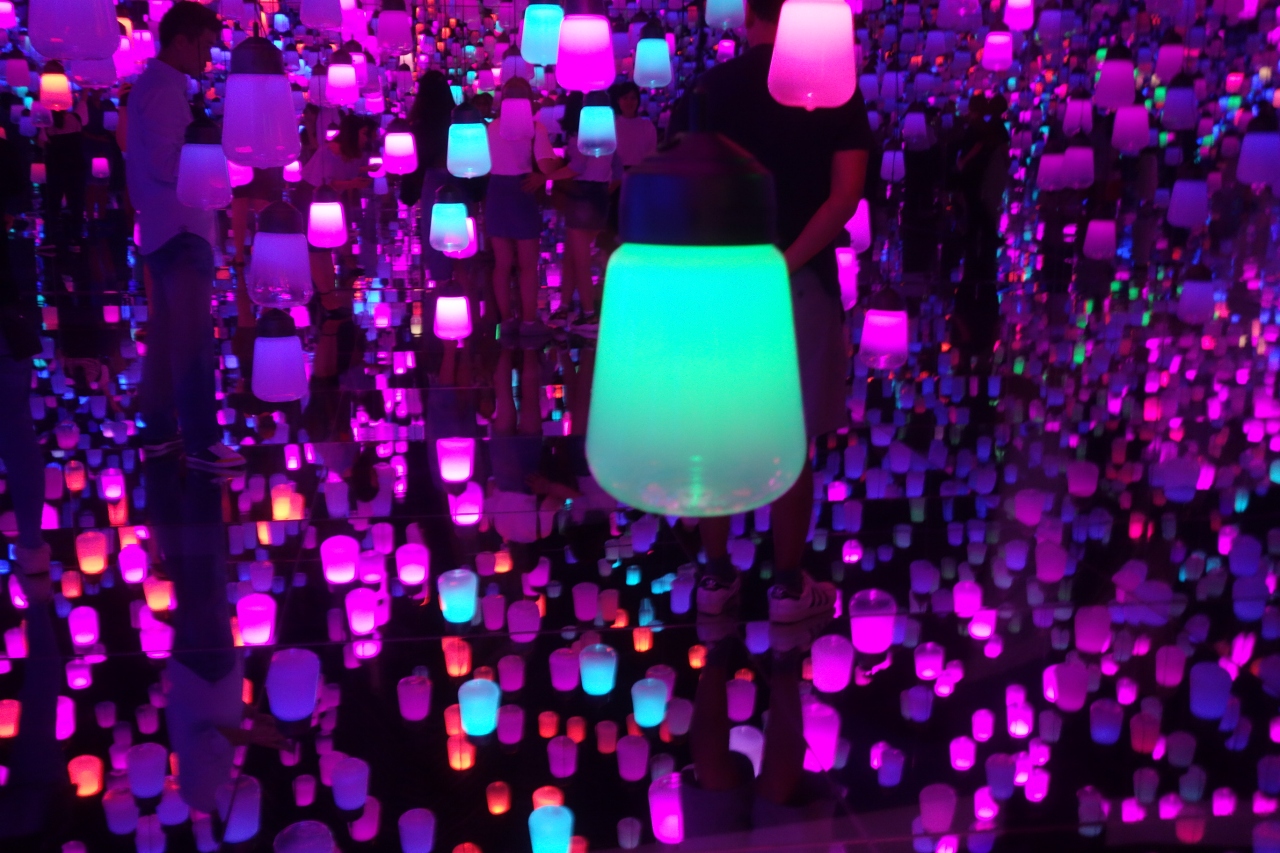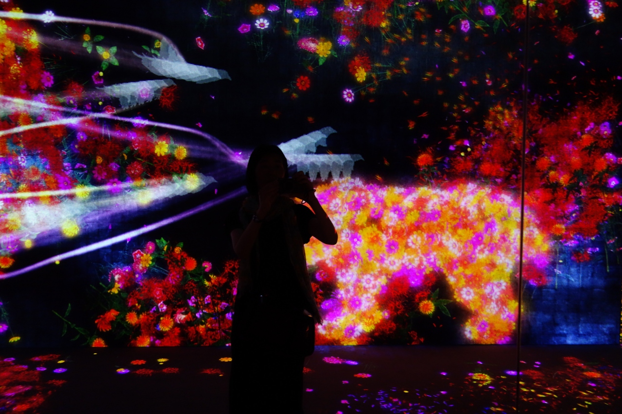 事前にネットでチケット予約する方式でおとな3200円と安くないですが、会場では圧倒的な色彩やデジタル技術を駆使した展示があふれており、電気代も相当なもの・・だと思うので、適正だと思います。