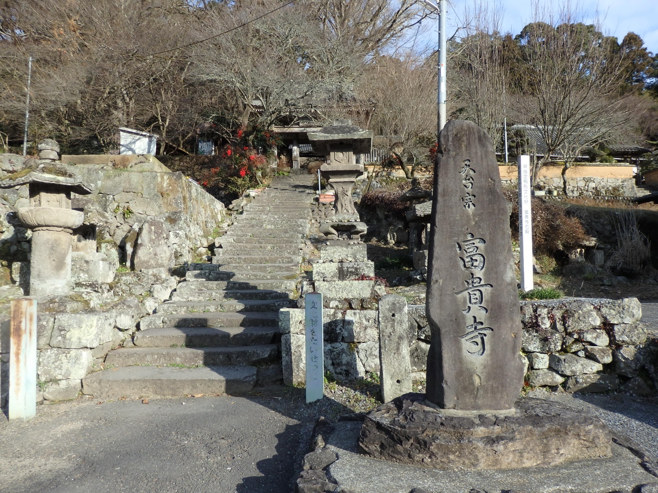 富貴寺の前の道路を挟んだ正面に、無料の駐車場がありました。車で行くのが便利だと思います。