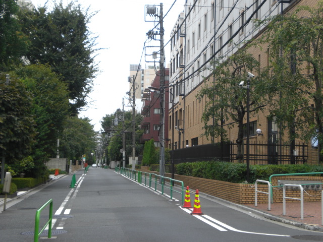 マンションと大学敷地の間の塀の植え込みの中ですので、判らないと思います。