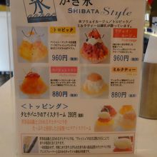 かき氷は4種類、どれも美しくて美味しそうで迷います。