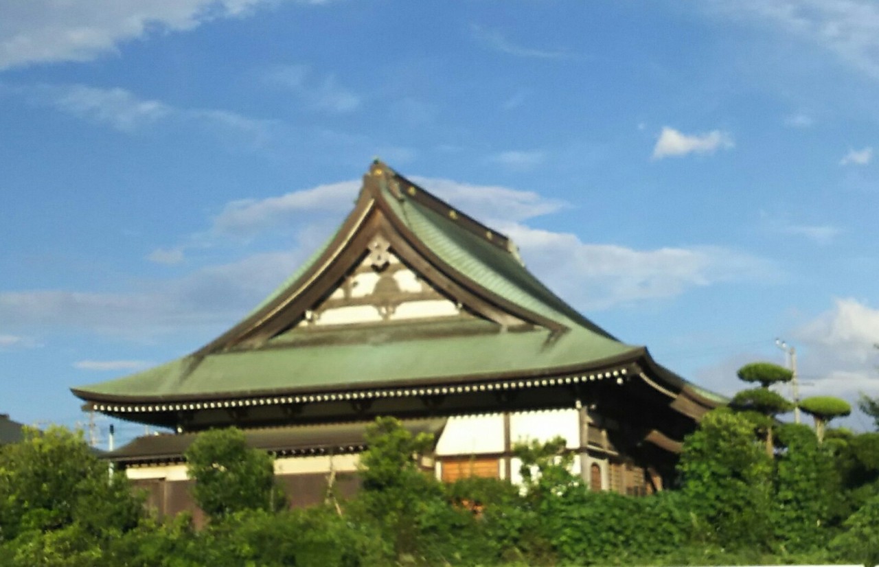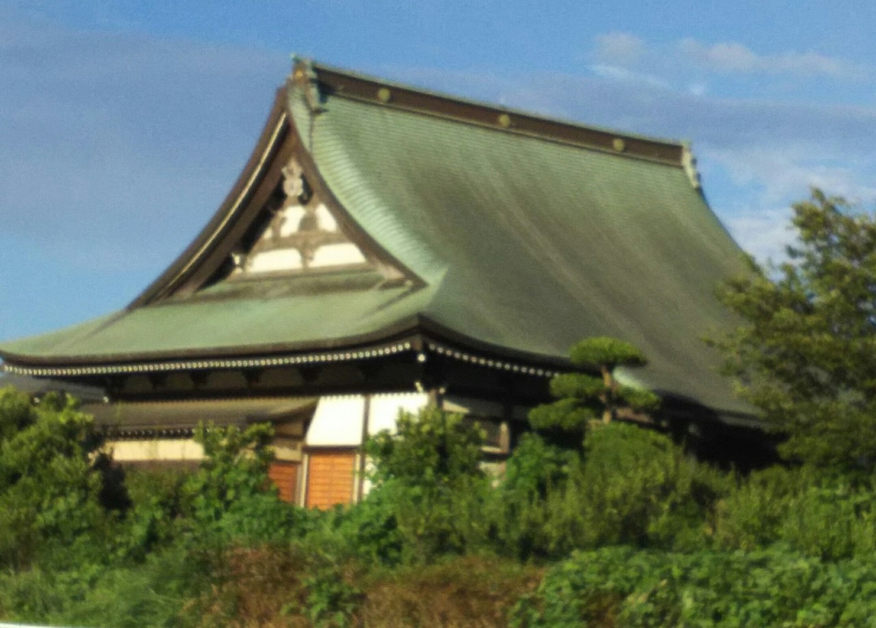 引地川沿いを歩いていると川沿いに大きな本堂がとても目立つ立派なお寺です。明るい緑の屋根が美しいです。