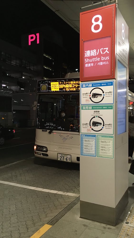 羽田空港のターミナル間を行き来する無料連絡バス。種類は二種類あって、国内線ターミナルだけをまわるものと、国際線ターミナルを経由するものとあります。アナウンスは常にしていますし、バス内でも多言語案内のモニターがあるので、外国人でもある程度わかりやすくなっています。