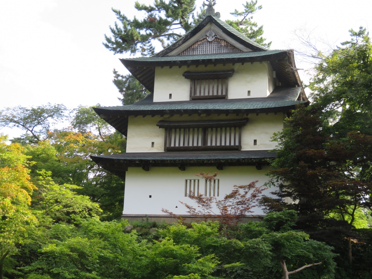弘前城天守本丸は現在石垣の積み直しで石垣なしの状態で、草原に鎮座ましましています。そのため、本丸以外にもいろいろな櫓にも目が行きます。