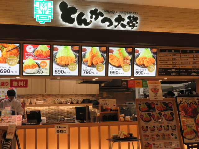イオンモール春日部2階にあるフードコートに新しくとんかつ屋が出来ました、長崎ちゃんぽんのリンガーハットが経営するとんかつ大學です、今回、カツ丼(626円)を食べました、リーズナブルな価格でも美味しかったです、みそ汁は97円です、かつ定食や唐揚げ定食がメインのようです、ソフトドリンクは162円です、1階のレストラン街にあるさぼてんより安く食べることが出来ました。