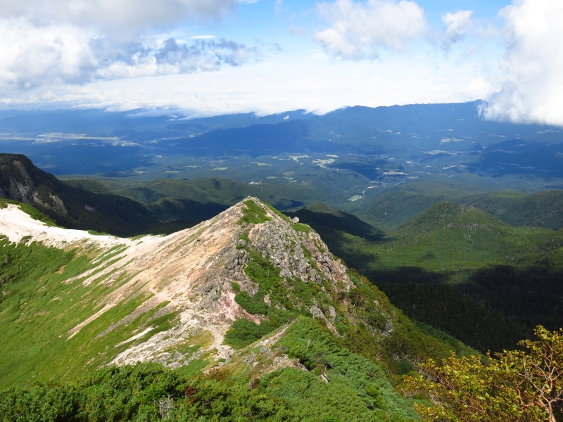 山頂は岩場(難しくはありません)、天狗と硫黄という人気の山に挟まれ、影が薄い山ですが、山頂は実はなかなかの景観です。