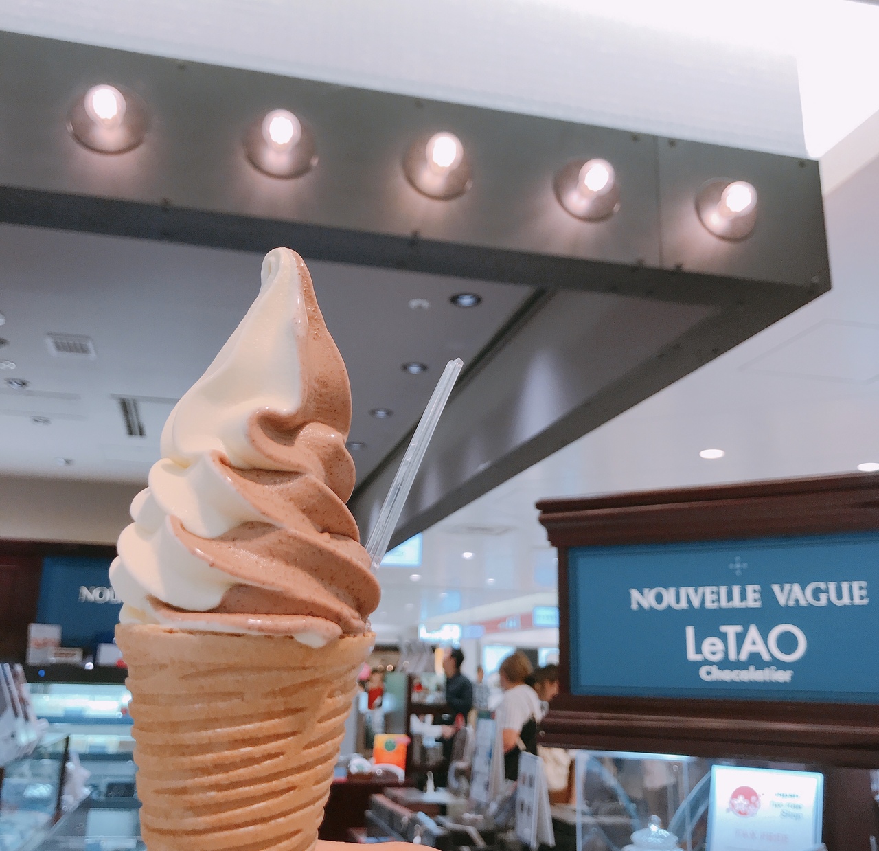 「マリアージュ チョコラ」を注文しました。ミックスソフトクリームです。味のバランスがよくて甘すぎずチョコが美味しかったです。店員さんがスプーンを使うかを聞いてくれました。コーンがサクサクで美味しかったです。