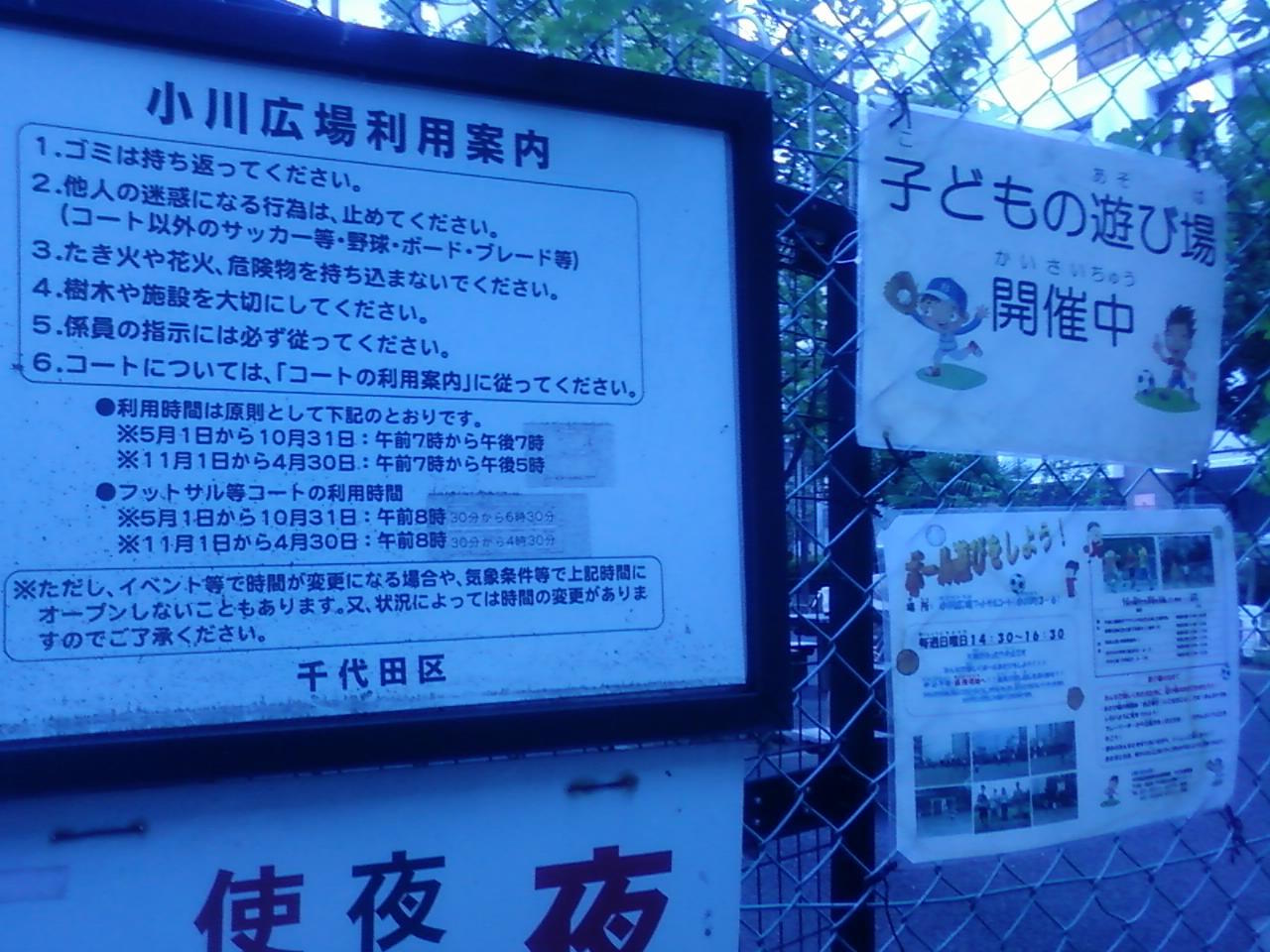 小川広場は、東京メトロ小川町駅から三分ほど、旧小川小学校にある公園です。いわゆる公園として椅子やベンチがある以外に、フットサルコートも有料で開放しています。隅の方にかつて小学校であったことを示す少年の像や校歌石碑などがあり、この場所がかつての小学校の卒業生たちによって今も大切にされていることが伺い知れました。