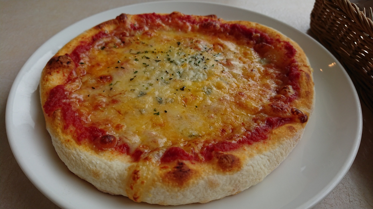 グリエル、チェダー、ゴルゴンゾーラ、モッツァレラの4種のチーズを使ったピザ。