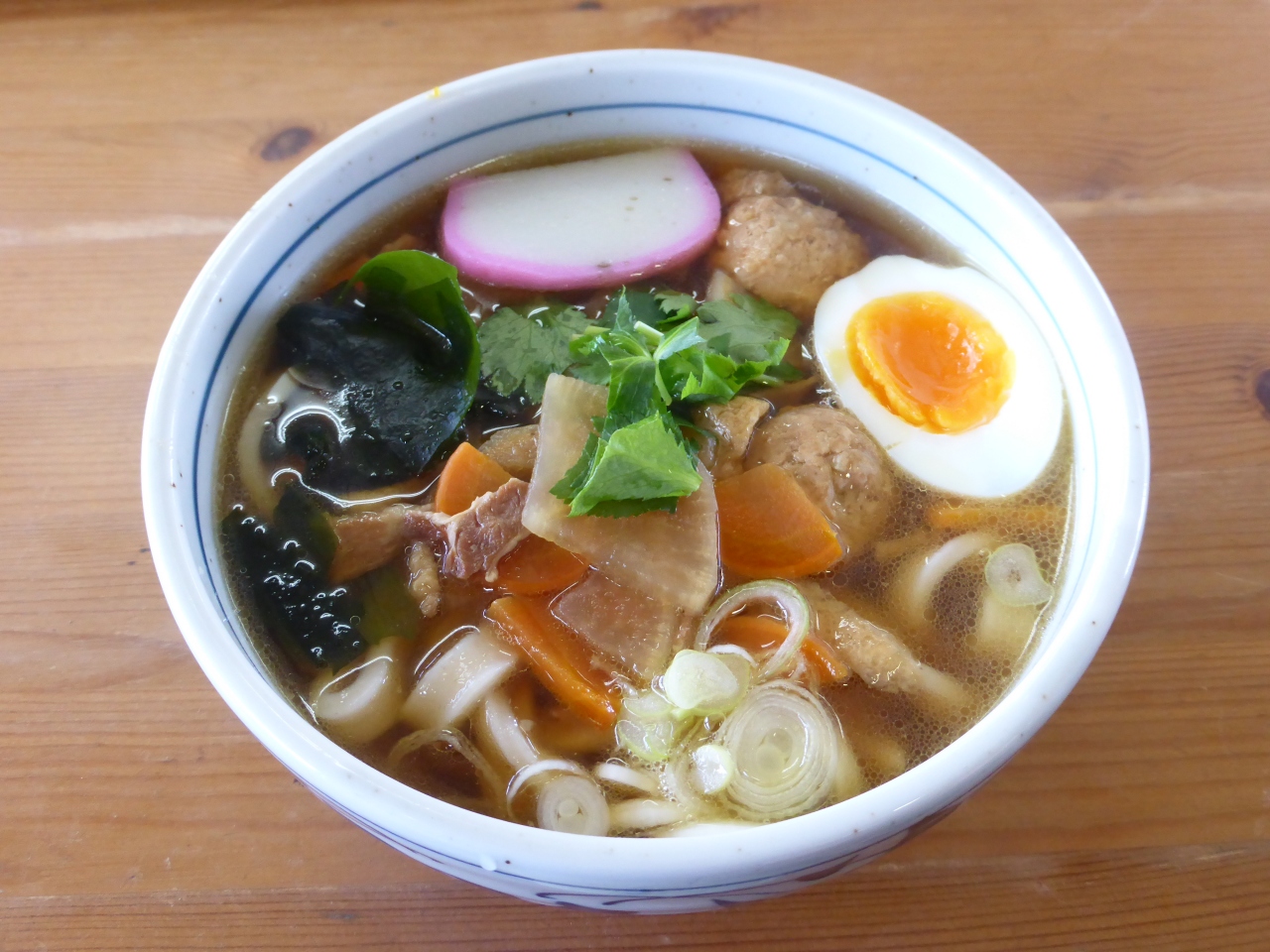 筑波山の御幸ヶ原にある食堂です。ランチで訪問。注文したのはつくばうどんとカレーうどん。つくばうどんとは筑波茜鶏の「つ」くね、地元産のしいたけやゴボウなどの「く」ろ野菜、ローズポークの「ば」ら肉の具に地産小麦とレンコンパウダーを使用した麺のご当地うどん。汁は濃いめ。うどんにはコシがあり、もちもち。食べ応えがありました。具は他に大根、人参、わかめ、茹で卵なども入り、肉、玉子の入ったけんちんうどんという感じでしょうか。カレーうどんは少し辛口で食欲が出ます。ただ麺はつくばうどんとは違い一般的なものでした。御幸ヶ原にある店だと、味はたぶんどこも似たり寄ったりと思われます。ただコマ展望台のレストランは混雑しており少々騒がしい。その点ではこちらで落ち着いてゆっくり食べられよかったと思います。