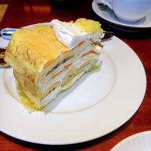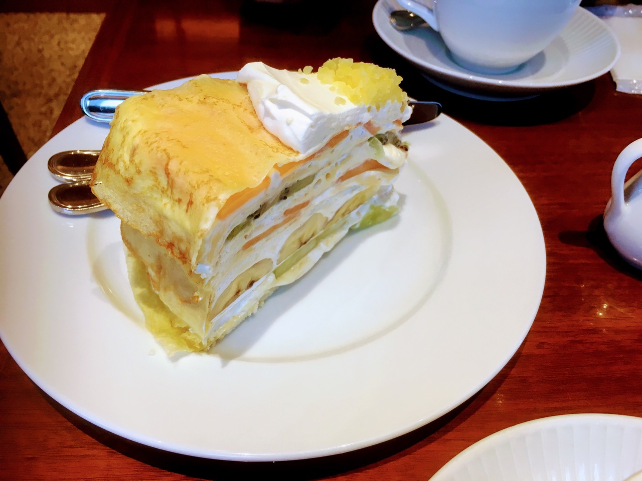 ミルクレープといえばクレープと生クリームが交互に重ねているというイメージですが、ここはたっぷりのフルーツ挟まっています。