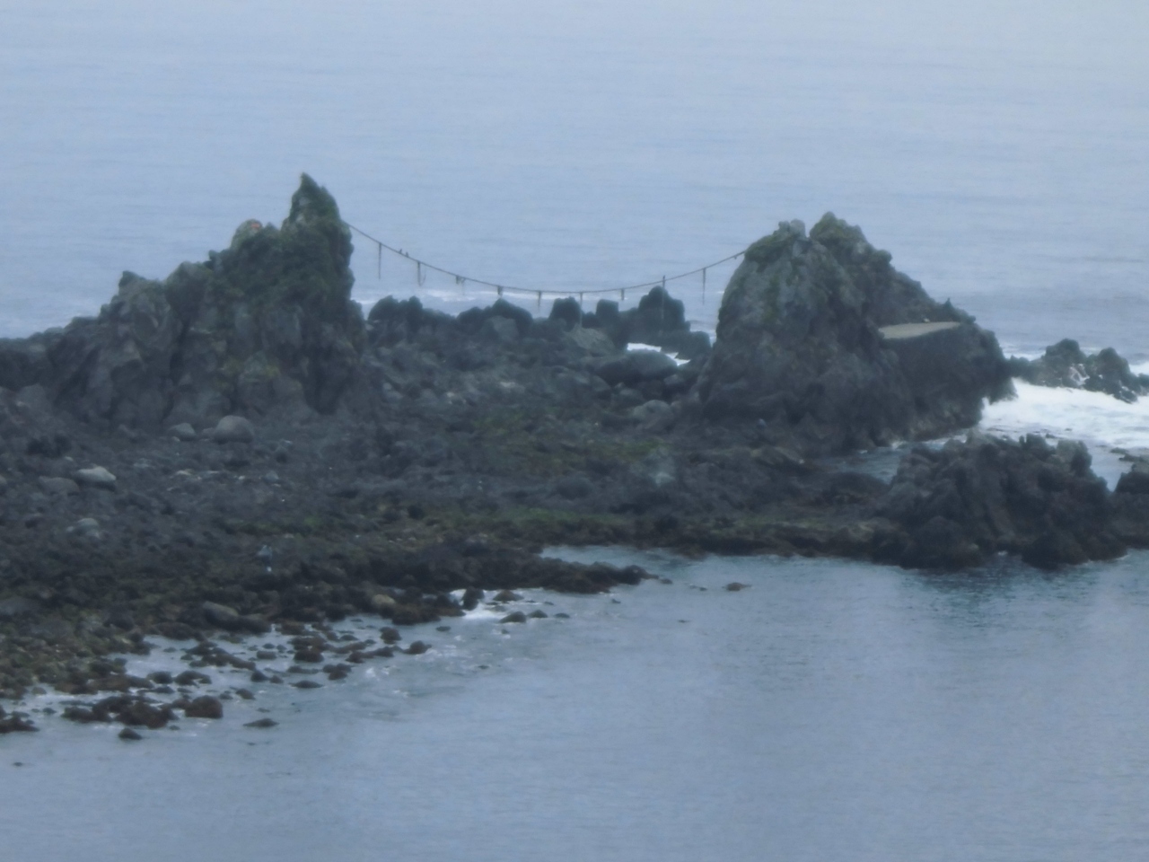 相模湾に突き出る真鶴岬の先端にある3つの大きな岩です。真鶴岬は車で行くのにそれなりに距離がかかり駐車場から歩くのにも