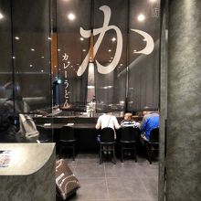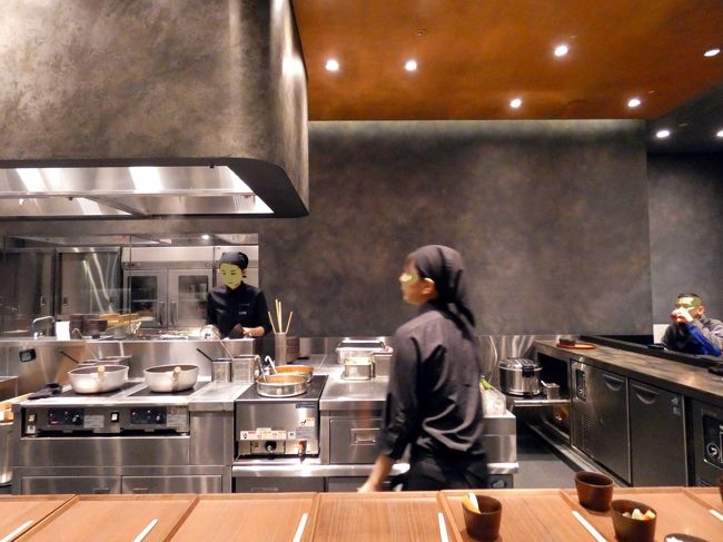 日本料理界の現代の名工 長島 博 氏監修のスタイリッシュなお店で、オープンカウンターのキッチンでは女性たちがテキパキとカレーうどんを作ります。