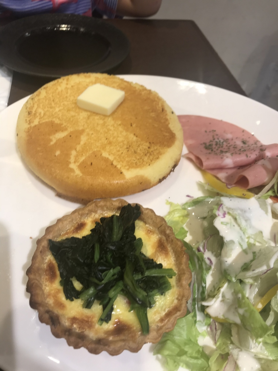 パンケーキと、キッシュのプレートを頼みましたが、結構バター感が強く、子供と2人で食べましたが、ヘビーでした。