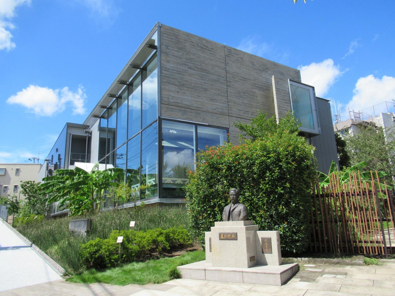しばらく行くと右手に2階建ての綺麗な建物が見え、手前で「夏目漱石」の胸像が出迎えてくれます。