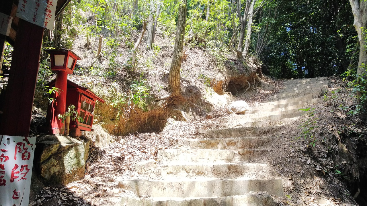 東照宮神社まで来て、そこから8分と案内に書いてあったので、気軽に山道を登り始めた。すぐに金光稲荷神社はありお詣りをすると右側に鳥居が並んでいる。伏見稲荷のように見事に奥まできれいに並んでいる。この奥に奥宮はあるのだろうと思いせっかくだから通り抜けて行くと、ちいさな社があちこちにある。どこが何神社なのかパンフレットを見てもよくわからない。奥宮を目指してどんどんと登って行きます。ずっと山の中の階段。規則正しくない昔のままの階段でとても登りにくい。37度の広島でこの階段は辛い。山の中なので爽やかではあるのだがそれでも辛い。次々と社に手を合わせながら行っても結局どこが奥宮だったのかわからなかった。でも全部参拝したから良いとしよう。頂上は広島を見渡せる絶景。対岸の厳島神社と広島を守っているとか。日光の東照宮もそのように東京を守っています。しかし、ほんとに大変でした。せっかく登って来たのに引き返すのも悔しいし、老体は死にそうに登りました。登りながら降りる時の事がとても心配でしたが、思いの他下りは大変ではなかったので、体力に自信があるうちにぜひ登ってみてください。大変だったけど行って良かったと思いました。