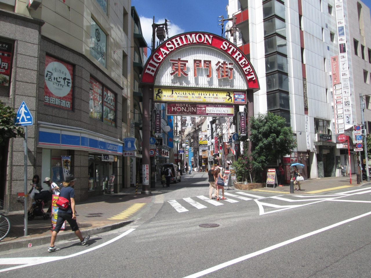 生田神社の東側にある神戸随一の歓楽街です。やはり、夜の顔といえば真っ先に思い浮かぶのはこの東門街です。日中は八百屋や魚屋、飲食店などが営業しており、モダンなイメージが強い街ですが、意外と下町的な感覚に浸らせてくれました。