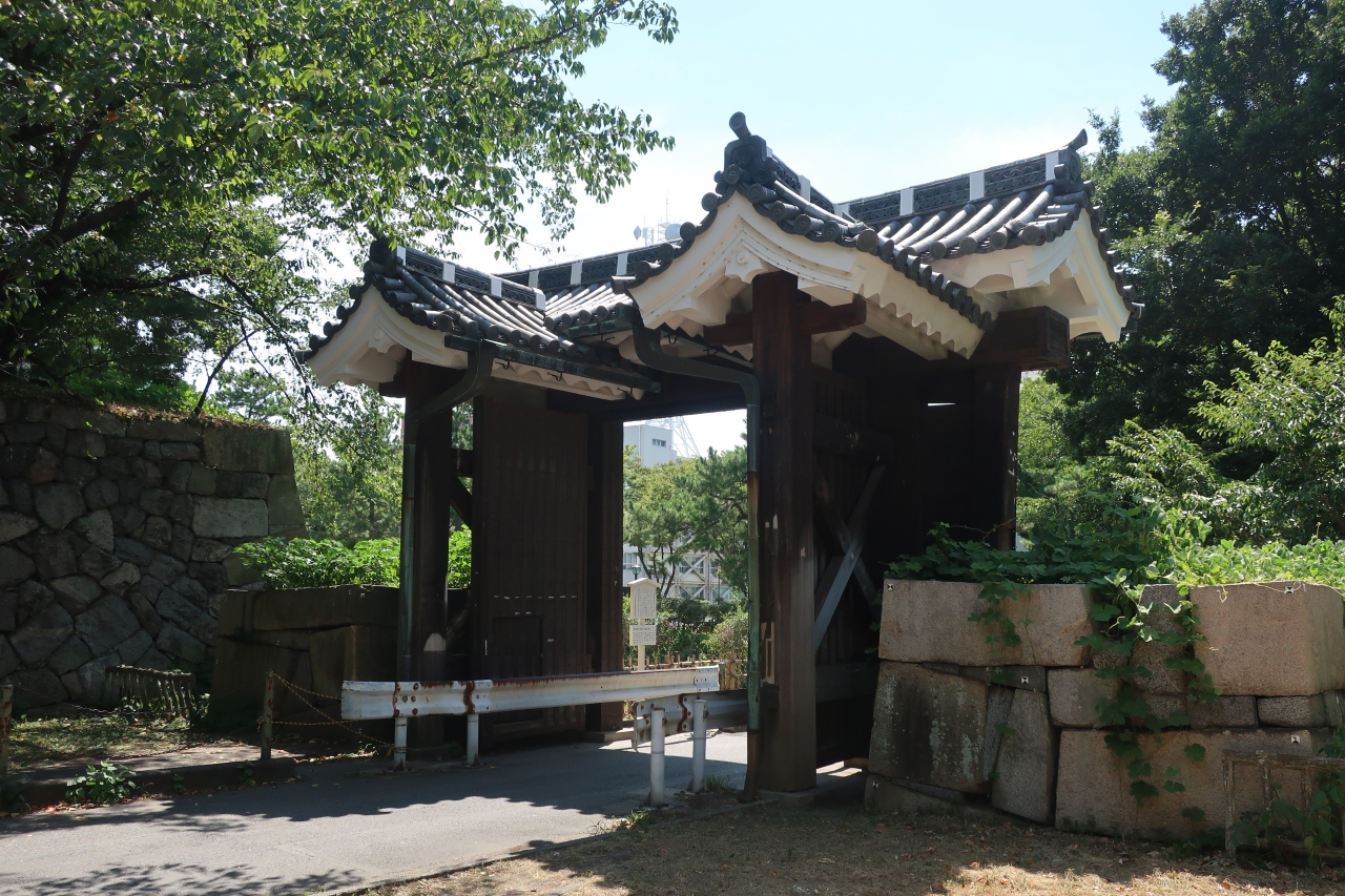 名古屋城には創建当時の門が3つ残っており何れも重要文化財に指定されていまが、2つは有料ゾーンの城内にありますが、この門だけ一つ離れた所にあり、いつでも無料で見られます。